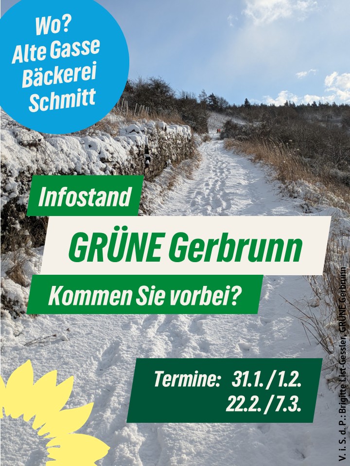Infostand der GRÜNEN Gerbrunn vor der Bäckerei Peter Schmitt in der Alten Gasse. Kommen Sie vorbei und lernen Sie unseren Bürgermeisterkandidaten Ilyas Aldogan und unsere Gemeinderatskandidierenden kennen.